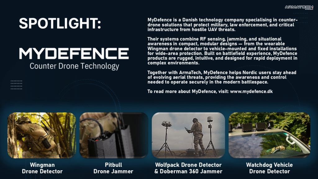 From Dagens Industri (translated and summarized): Since 2017, ArmaTech and MyDefence have developed modular, field-proven anti-drone systems for military and civilian users worldwide. [...]